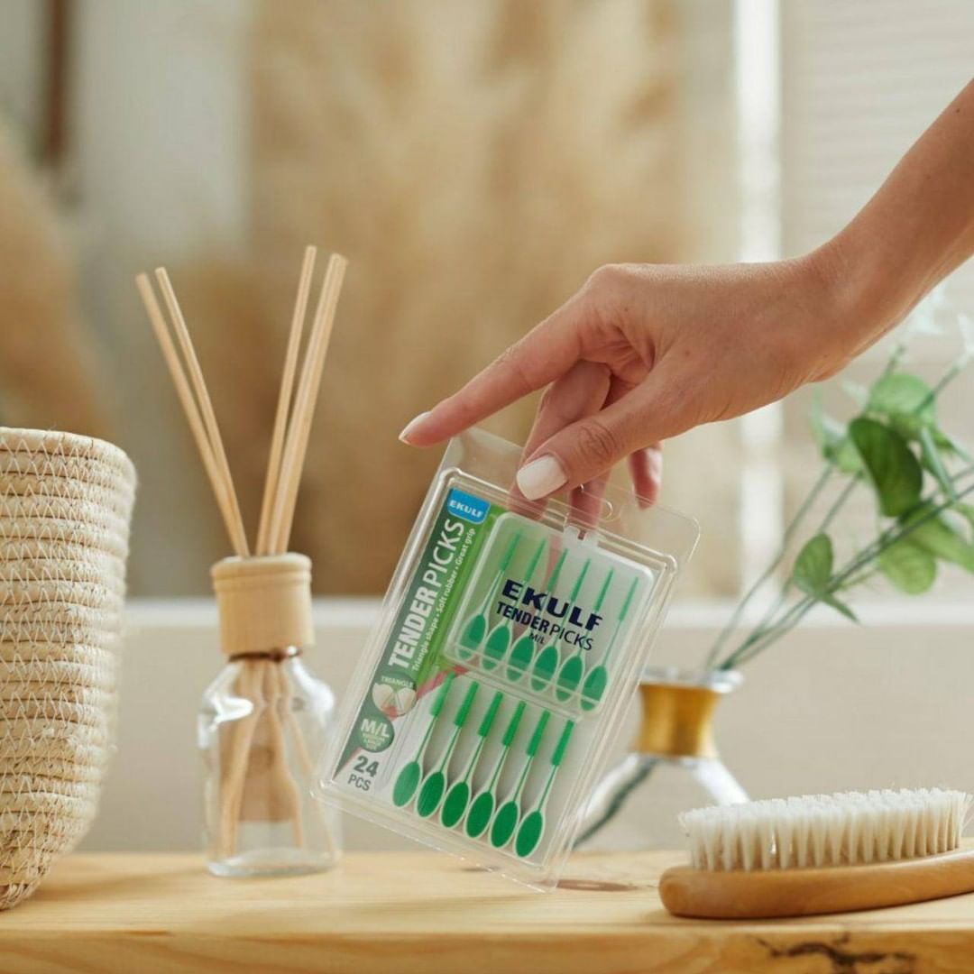 Tandstikkere med bløde filamenter af gummi til blid rengøring.