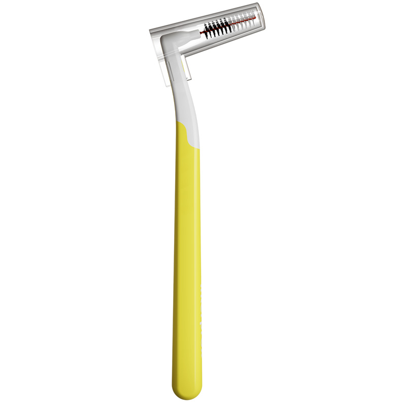 interprox vinkel plus mini mellemrumsbørste passer til tandmellemrum fra 0,7 mm.